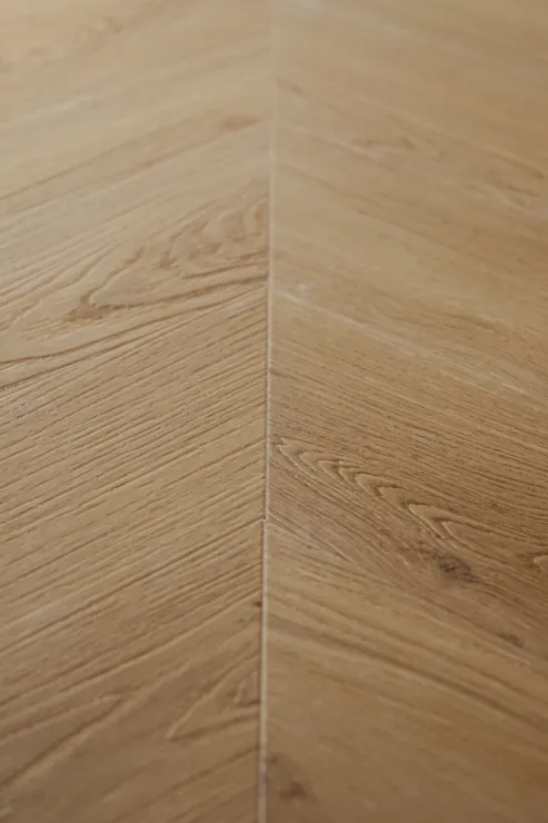 Kolekcja Chevron to współczesny hołd dla ponadczasowego wzoru jodełki francuskiej – eleganckiej, geometrycznej formy, która od lat zdobi najbardziej stylowe wnętrza. Charakterystyczny układ pod kątem 45° w połączeniu z realistyczną strukturą drewna i matowym wykończeniem tworzy efekt szlachetnego parkietu o wyrazistym rytmie i głębi światłocienia. Paleta dekorów obejmuje zarówno jasne, naturalne tony rozświetlające przestrzeń i dodające jej lekkości, jak i głębsze, bardziej nasycone odcienie z wyraźnym usłojeniem, wprowadzające wrażenie ciepła i luksusu.